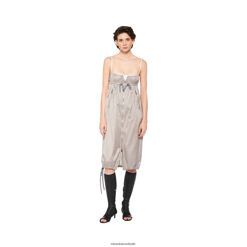 שמלת משי טכנית זו, שנראתה בתצוגת אביב-קיץ 2023, מבטאת רעיון של אופנה כאמצעי לתרגום תגובה למציאות הנוכחית לצורה חומרית. הריבוד הרעיוני המשלב בגדים עם הלבשה תחתונה מחייה משטחים, מדגיש את הרעיון שכל מושג, באמצעות התרגום שלו, משתנה כדי לקבל צורה חדשה ואמת אחרת. תיקון הלוגו מקשט את החזון החדש הזה של סגנון.