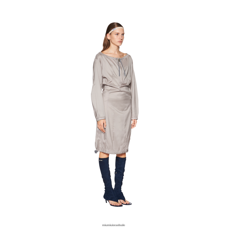 שמלת משי טכנית זו, שנראתה בתצוגת אביב-קיץ 2023, מבטאת רעיון של אופנה כאמצעי לתרגום תגובה למציאות הנוכחית לצורה חומרית. הסגנון האלגנטי של הבגד מושלם לשכבות מעודנות, המדגיש את הרעיון שכל קונספט, באמצעות התרגום שלו, משתנה כדי לקבל צורה חדשה ואמת אחרת. טלאי הלוגו מקשט את החזון החדש של סגנון.