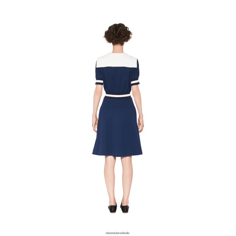 שמלת הפיקה החדשה מבטאת אסתטיקה נשית ופרובוקטיבית בהשראת העולם הימי. לוגו הג'קארד המנוגד מהדהד את צבע עיטור הסריג בשרוולים ובמותניים ומוסיף נופך איקוני לבגד. החצאית הדפוקה מעניקה לבגד תנועה ודינמיות, בעוד שצווארון המלחים הרחב משלים את השמלה עם פרט לא צפוי.