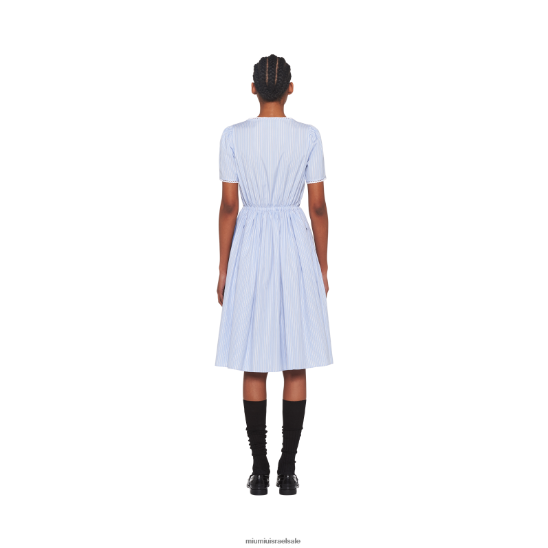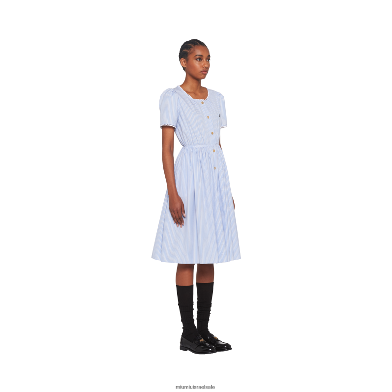 לבגד הזה יש סגנון רטרו המשלב אירוניה ורומנטיקה. הלוגו של miu miu רקום בצבע מנוגד בשמלה זו בהתאמה ובהתרחבות עם עיטור מסולסל על קו הצווארון ושולי השרוולים.