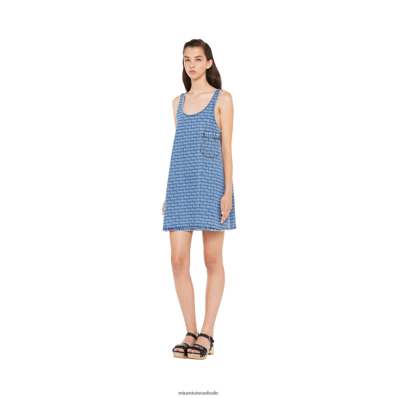 שמלת מיני מתרחבת זו עם צווארון עשוי ג'ינס מכובס המעניק לה קסם וינטג'י. העיצוב המלוטש ללא שרוולים מוגבר על ידי הדפס הלוגו של miu miu.