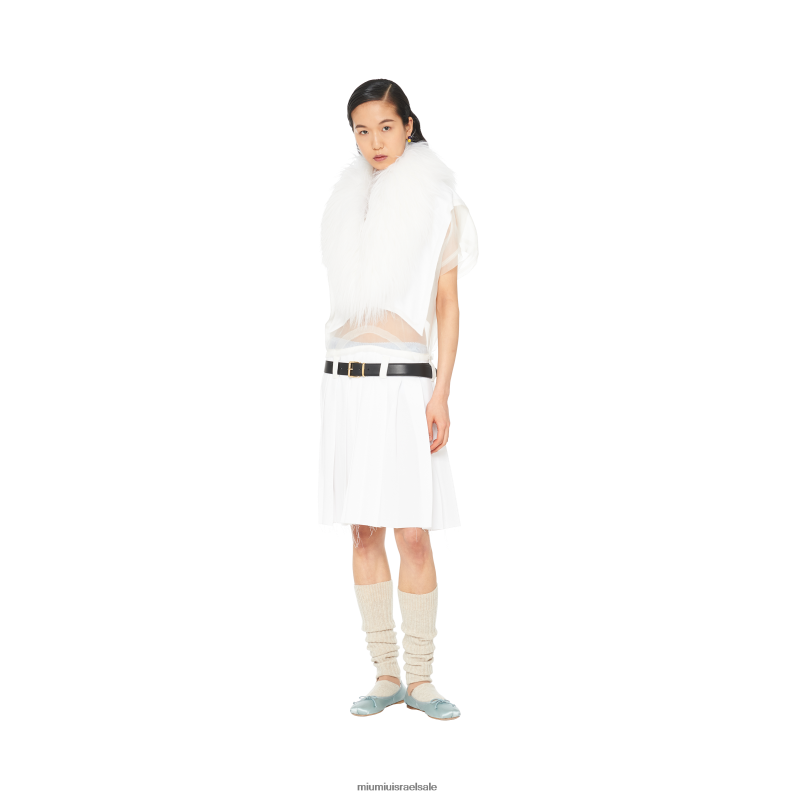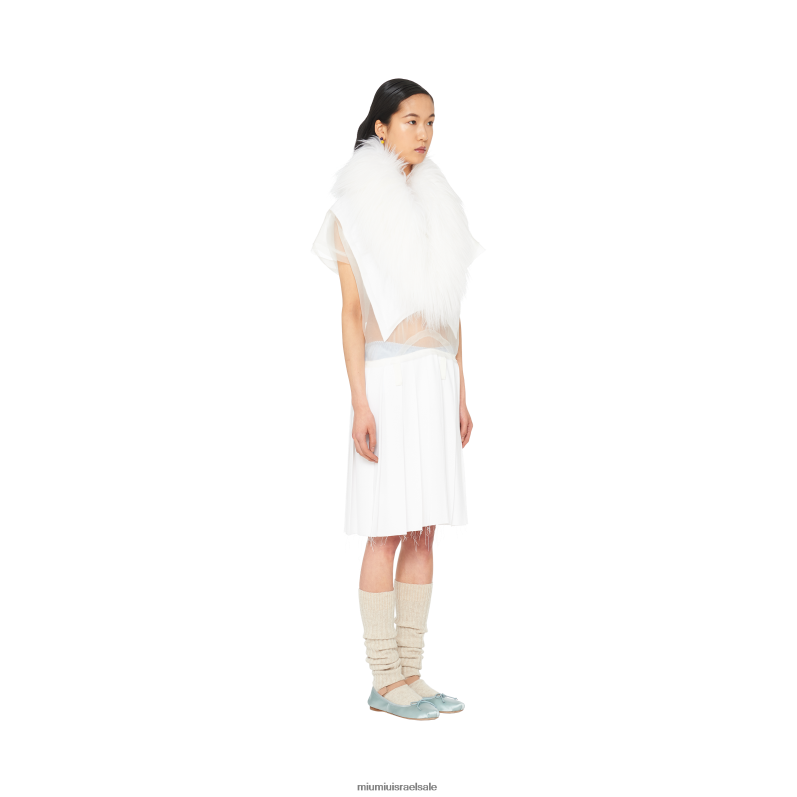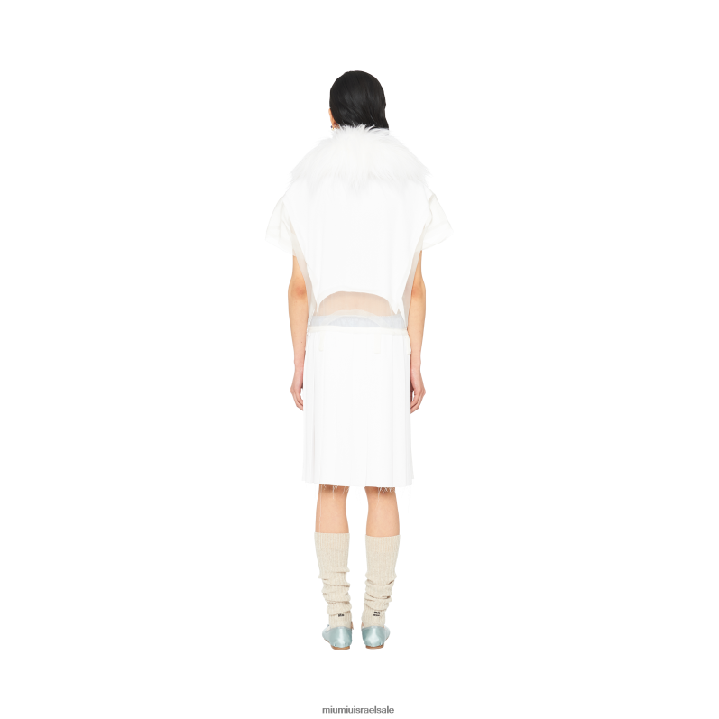 miu miu משחק עם קודים אסתטיים רחוקים לכאורה כדי ליצור הגדרה חדשה של אלגנטיות. שמלת סבל זו, המוגדרת על ידי צללית נוזלית ובלתי מורגשת, מעוטרת בצווארון קשמיר משובח.