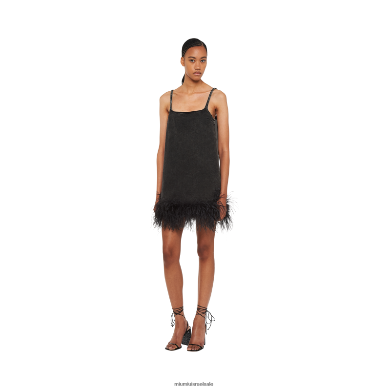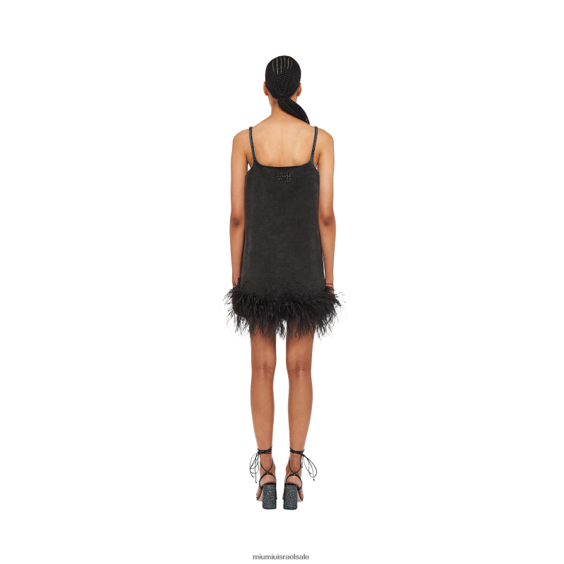 הפניות לרטרו מאפיינות שמלת מיני זו עשויה ג'ינס. עיטור הנוצות בשוליים מוסיף מגע קל ופרובוקטיבי לבגד עם אפקט וינטג'. הבגד עם תפרים תואמים וכיסים קדמיים מעוגלים מעוטר בלוגו המודפס בחלק האחורי.