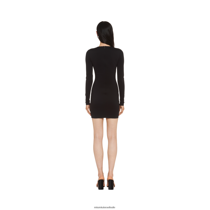 ביטויים חדשים של נשיות מתעצבים כעיצובים מתוחכמים. miu miu מדמיינת מחדש את הצללית של שמלת המעטפת בגרסת סטרץ' עם צווארון חור מפתח.