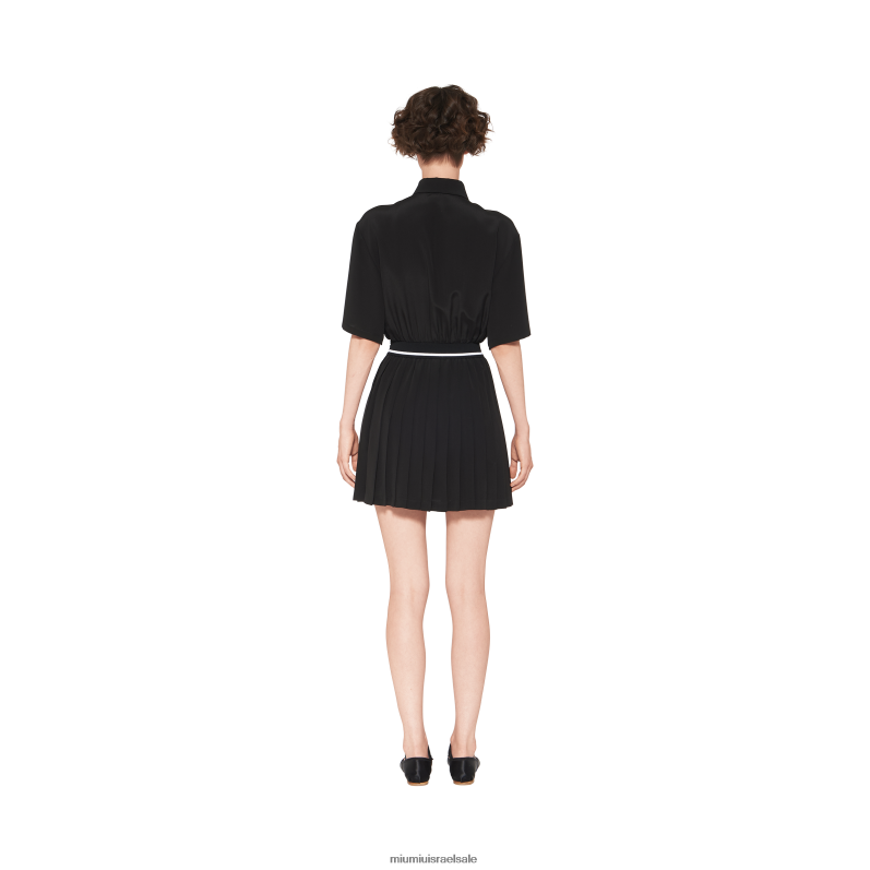 בשמלת מיני קרפ דה צ'ין החדשה הזו, שמלת החולצה הקלאסית מתחדשת עם צלליות ופרטים מודרניים ומודרניים. חצאית הקפלים הקצרה מעניקה נפח ותנועה לבגד, בעוד שרצועת המותן הסרוגה בולטת הודות לניגודיות הצבעים והלוגו שמשלים את השמלה בנגיעה ייחודית.