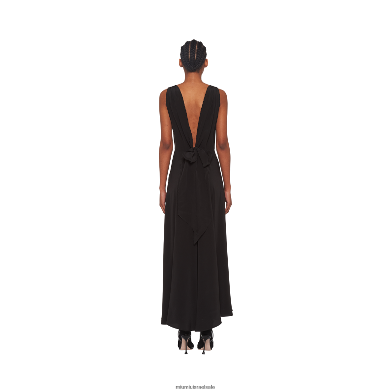 אלגנטיות ערכית ונצחית מתעוררת לחיים בצללית הזורמת של שמלת קרפ דה צ'ין זו. הבד הקל מאופיין בכיווצים ותקוות המוסיפות תנועה לעיצוב.