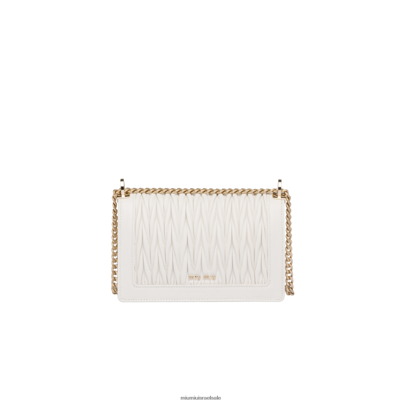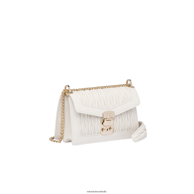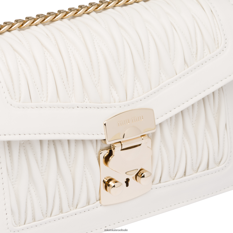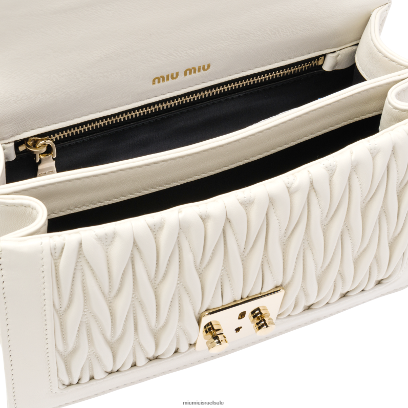 העיצוב האלגנטי של תיק הכתף הסודי של miu מוגדר על ידי הניגודיות האלגנטית עם הקישוט החלק וסוגר הנעילה המתכתית המעודנת שחושפת את הפנים הפונקציונלי מצופה סאטן עם שני תאים.