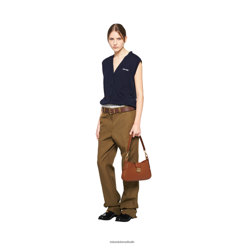 הקווים המלוטשים והעיצוב הפשוט של תיק נווד מעור זה משופרים על ידי הגישה הייחודית והנועזת של miu miu. החומרה בגוון הזהב מוסיפה נגיעות נוצצות לתיק, בעוד שהלוגו של האותיות מעניק לעיצוב אופי איקוני וייחודי. הידית הנשלפת משלימה את התיק עם פרט פונקציונלי המדגיש את הרבגוניות שלו.