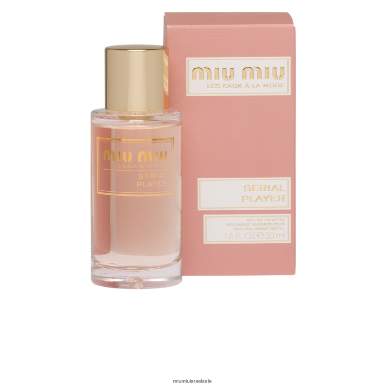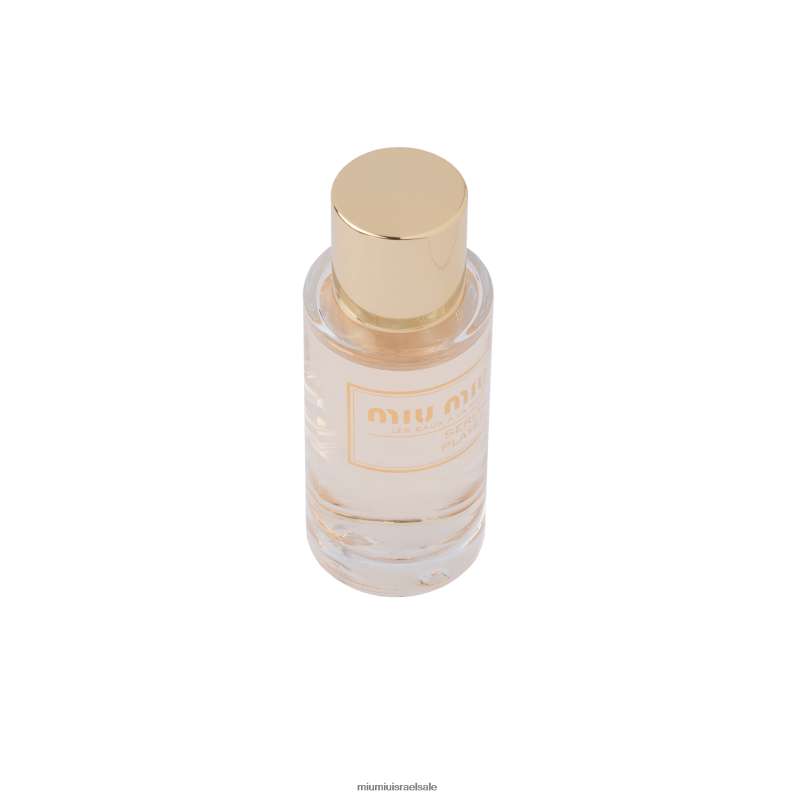 הנגן הסדרתי מיועד לשובבים בעלי חיים, ששמים את ההימור הגדול ביותר שלהם על שמחה. נוצר על ידי משתפת הפעולה של מיו מיו, דניאלה אנדרייר, הנגן הסדרתי של מיו מיו אוהב כיף, שטוף שמש ותוסס, ומזכיר לנו שהחיים הם מגרש משחקים. ליצ'י מעורר תיאבון מתפוצץ על פריחת כתומה בהירה, שזור בבסיס וניל טבעי ממכר. או דה טואלט בצבע לבן-פרחוני זוהר לשילוב עם אביזרים צבעוניים להרפתקה מאושרת. צור מארז מותאם אישית והלביש את הניחוח שלך: בחר כיסוי עליון ותחתון, שניהם מעוטרים בהדפסים איקוניים של miu miu.